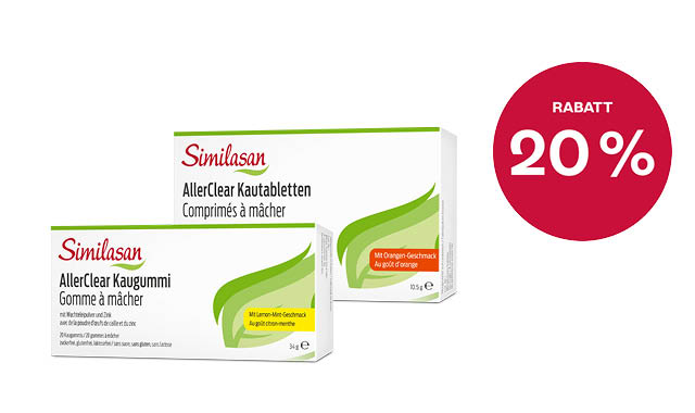 Jetzt 20 % Rabatt beim Kauf von AllerClear Kautabletten und Kaugummi.